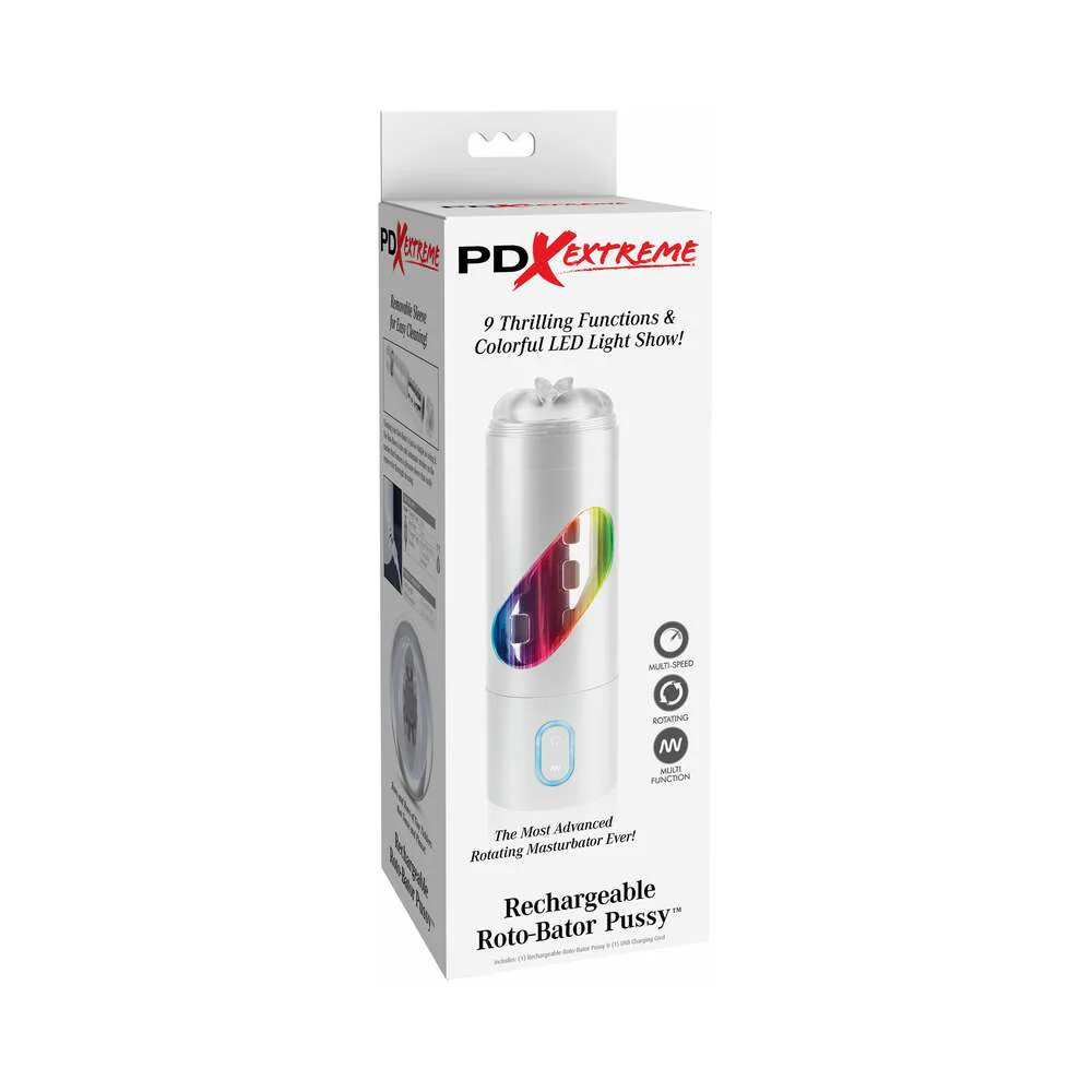 PDX Rechargeable Roto-Bator Pussy Light-Up Rotating Stroker Clear/White